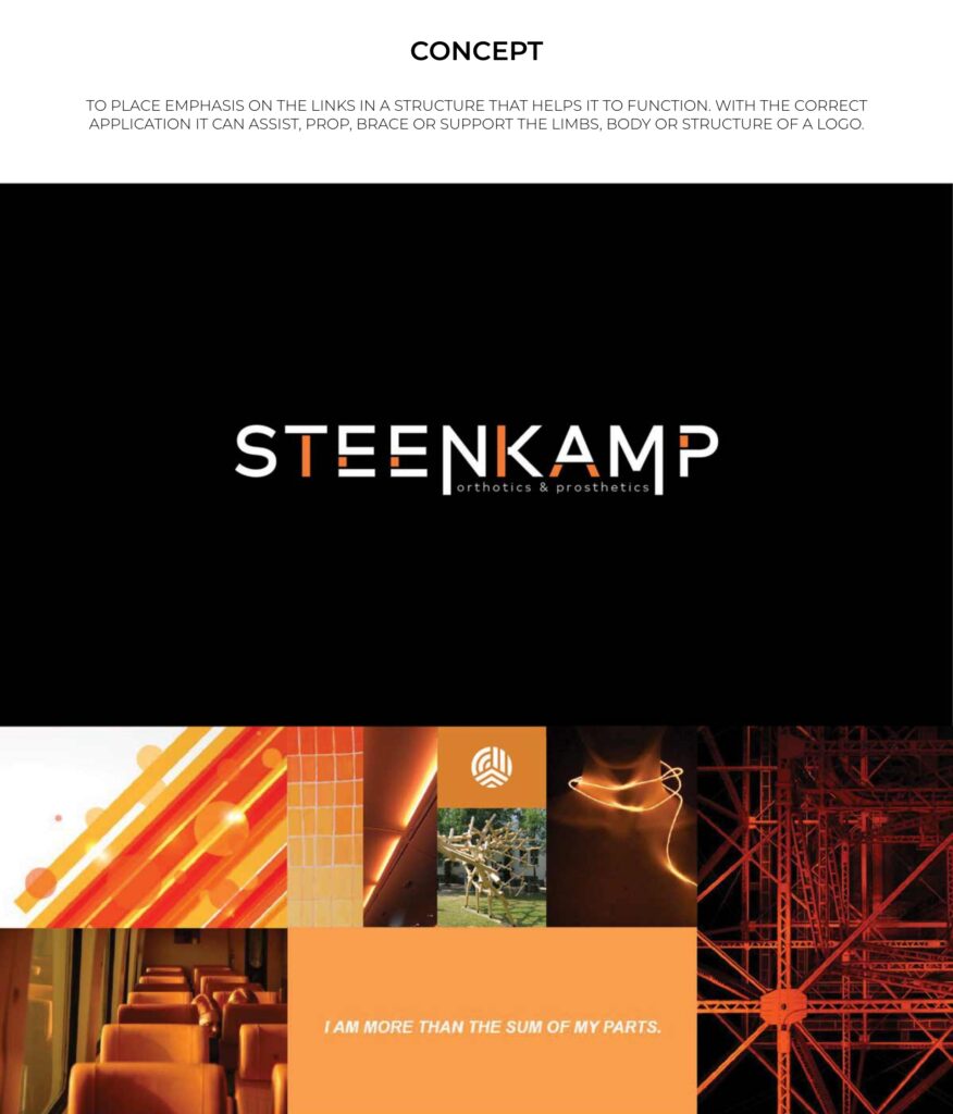The concept of this logo design is to visually place emphasis on the links in a structure that helps it to function. With the correct application is can assist, prop, brace or support the font. Just as the client does the same for bodies and limbs.
